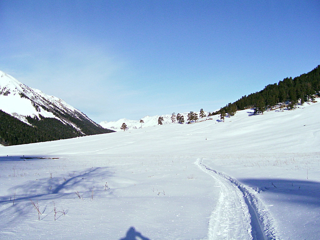 Однако, снега слишком мало, долину режет колея-артерия цивилизации – и