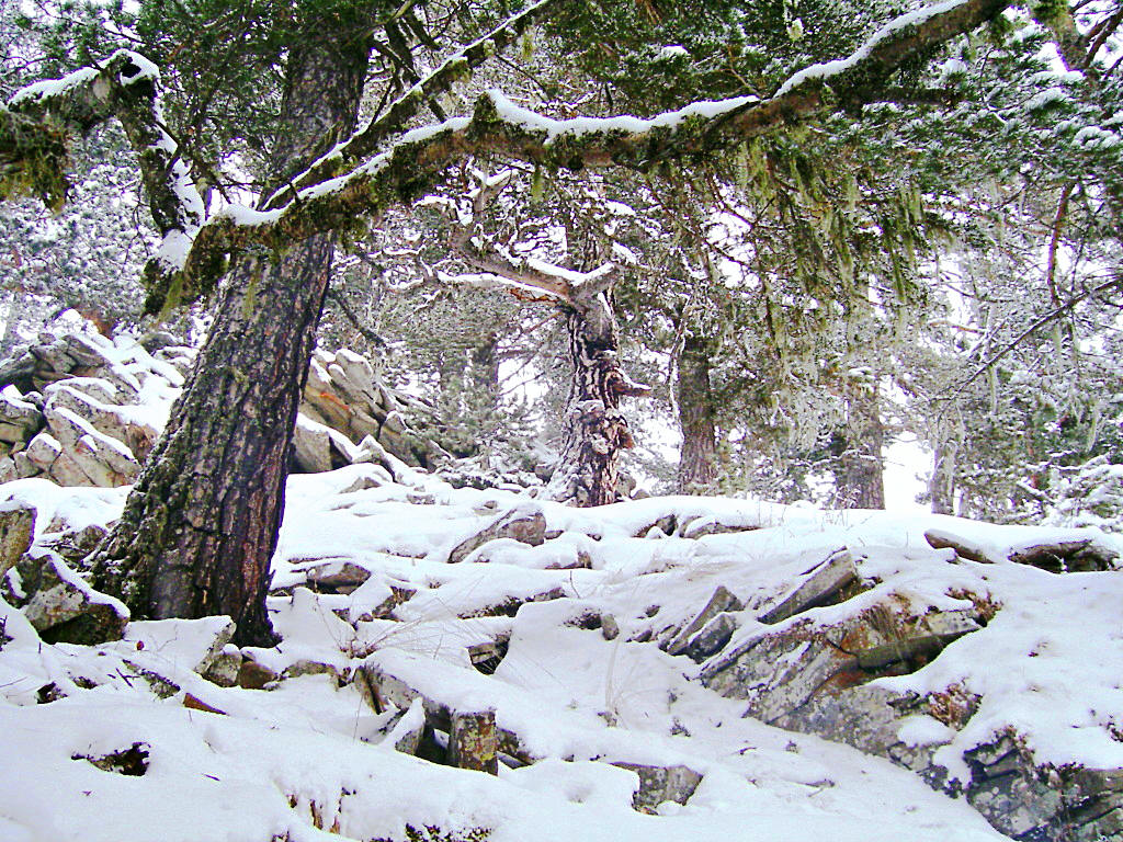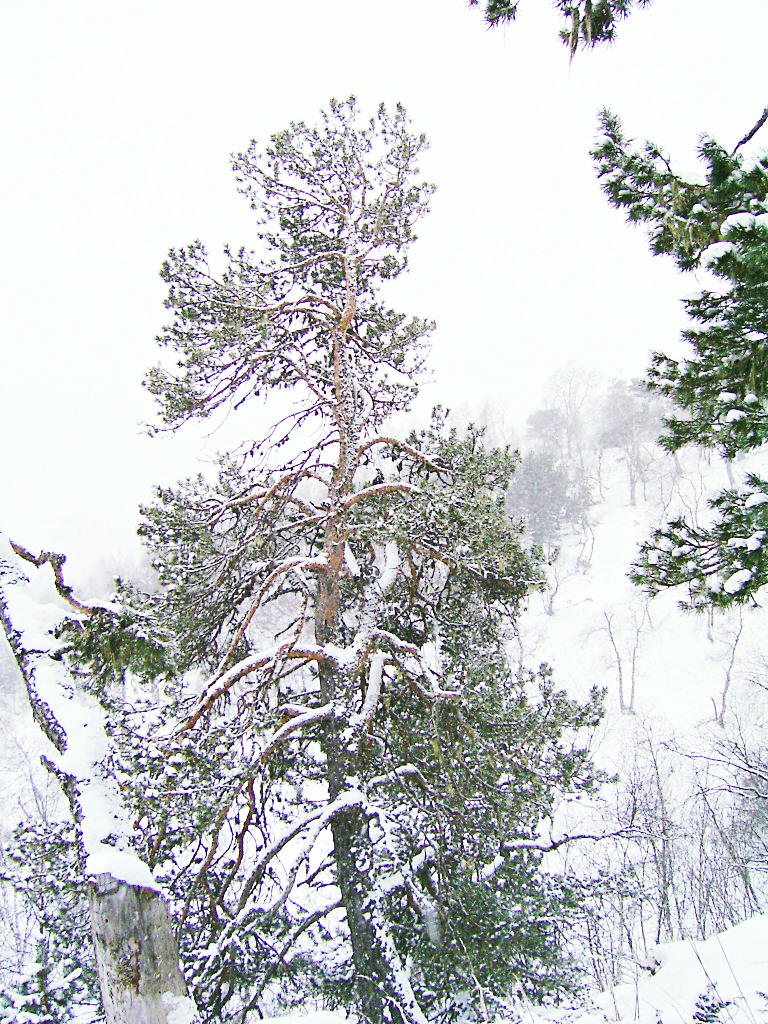 Сосны, скалы, ветер и снег на всем. Снег сыпет, лепит фигуры деревьев и камней.