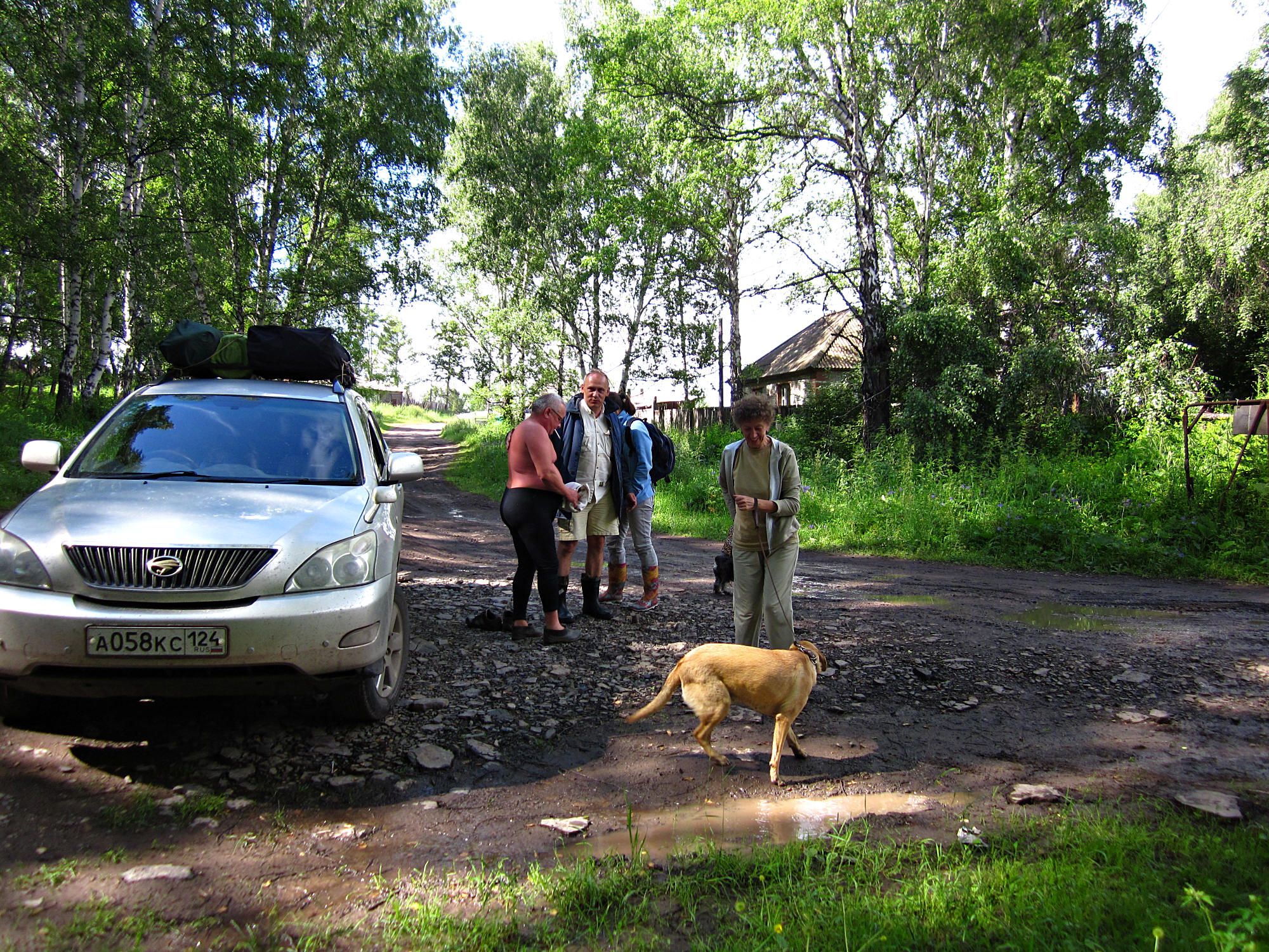 Дождь хоть и кончился пока мы ехали до озера Парное, но создал труднопроходимую проблему – проехать по непролазной дороге вдоль озера до свободного участка западного берега, который покрыт лесом. При объезде колеи сверху, по склону, шкипер прислонил свой паркетник к берёзе. Героическими усилиями мы вытолкали его. Вообще, эта дорога была усеяна героями со своими мустангами. И они помогли нам вытащить мустанга Андрея. Моя игрушечная Бетси, весом немногим более полтонны, легко проскользнула меж берёз, верхом, минуя топи дорожной колеи.