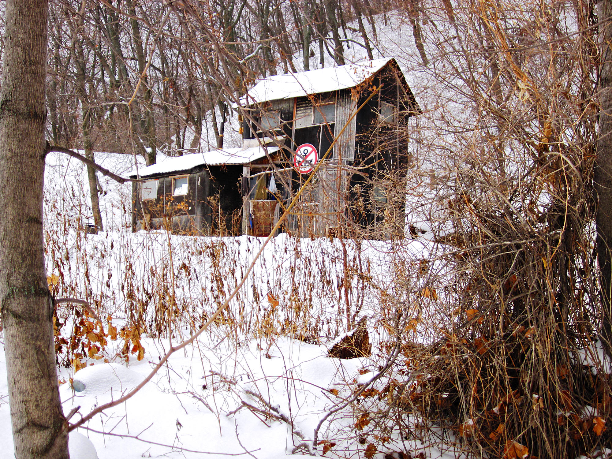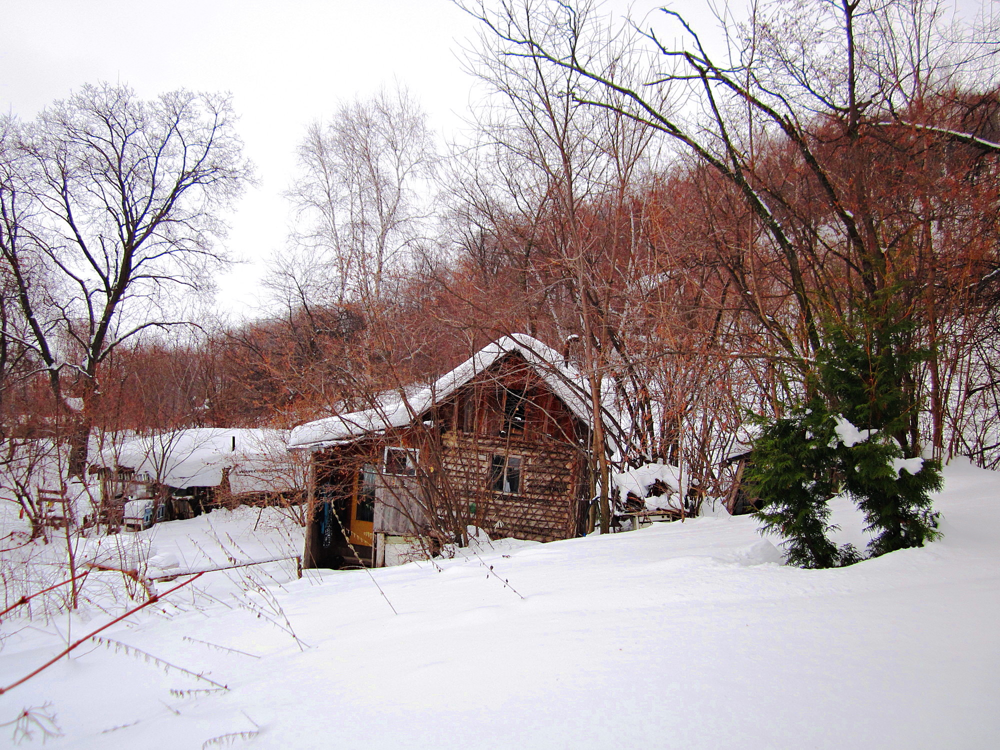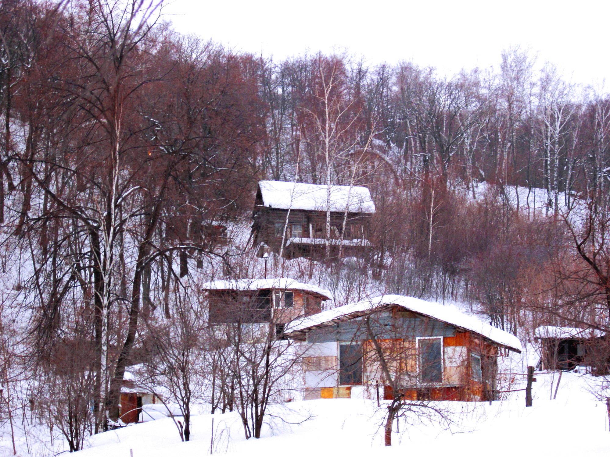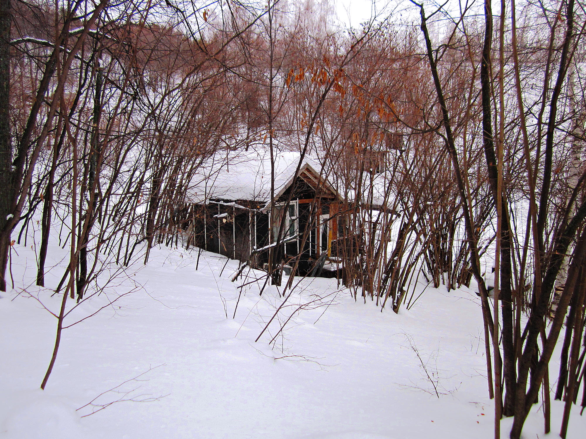 засыпает снегом, и хижины средь оголившегося леса напоминают о счастье
