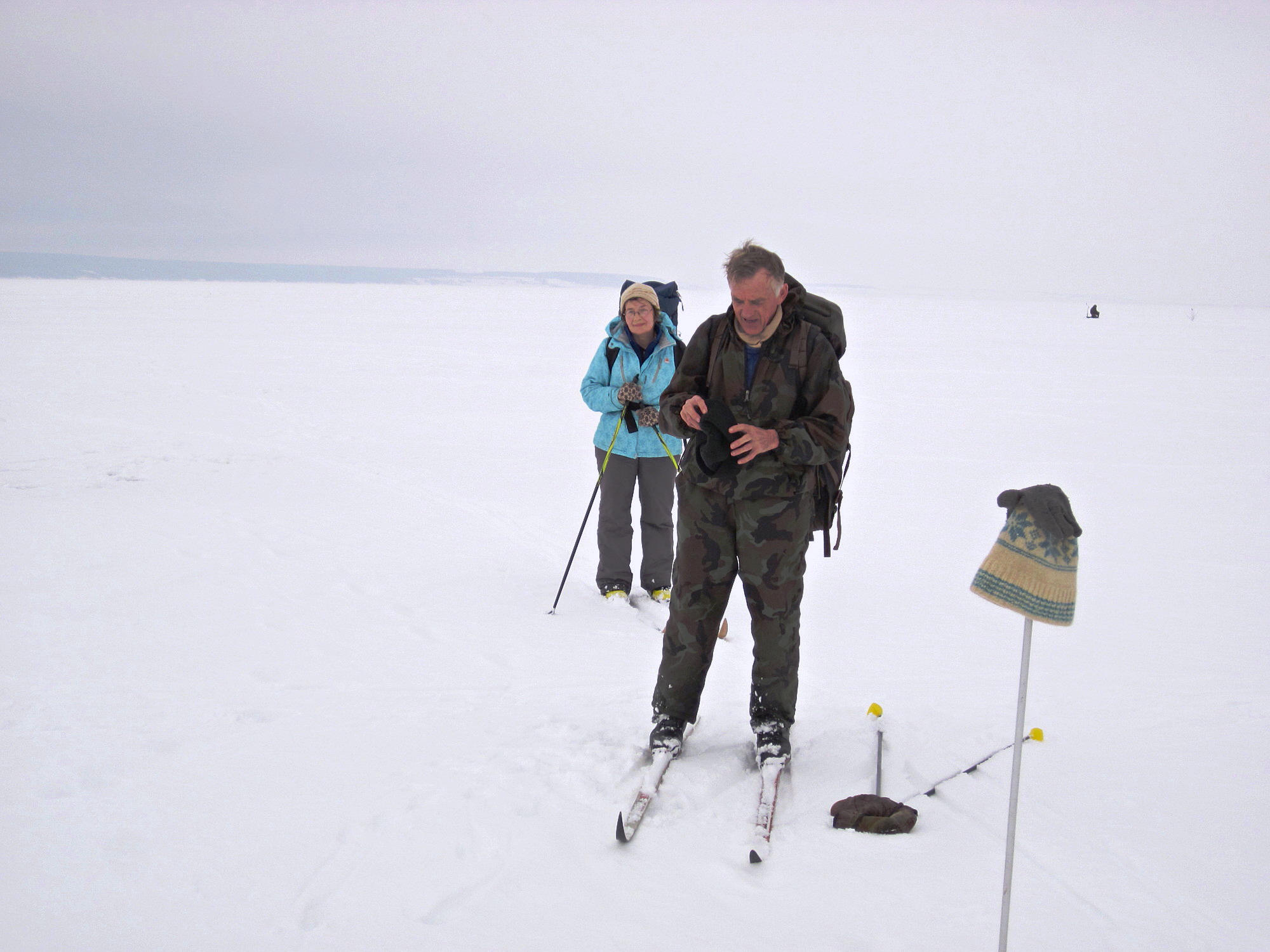 Обратная дорога домой на лыжах по Волге выдалась горячей: было 0С и штиль, лыжи не скользили. Мы вымокли насквозь.