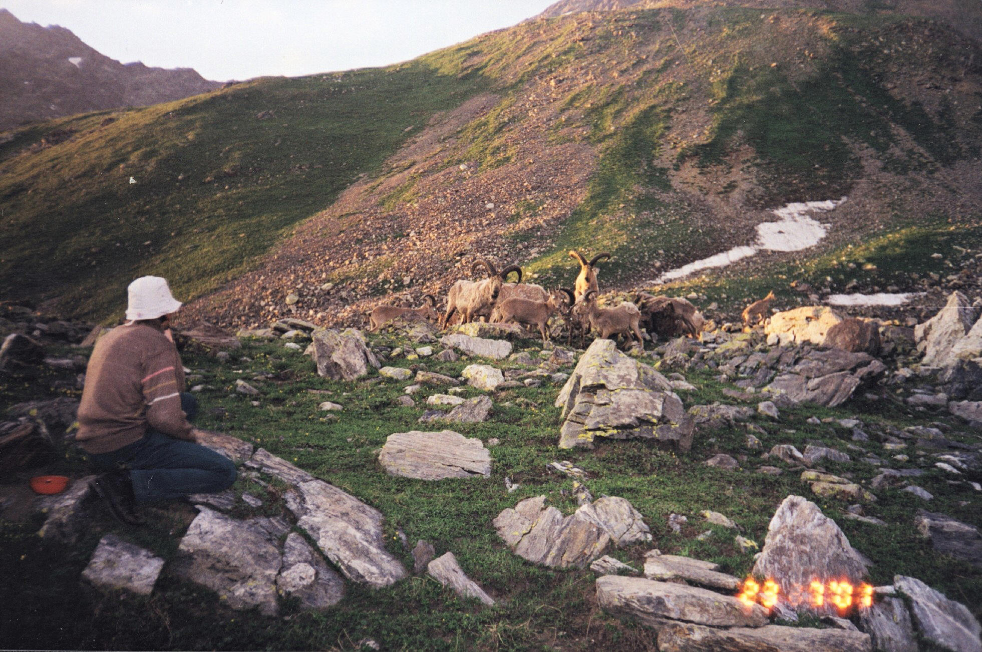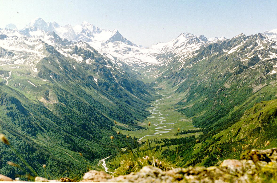 по среднегорью – по альпийским лугам, снежникам, каменистым высокогорным